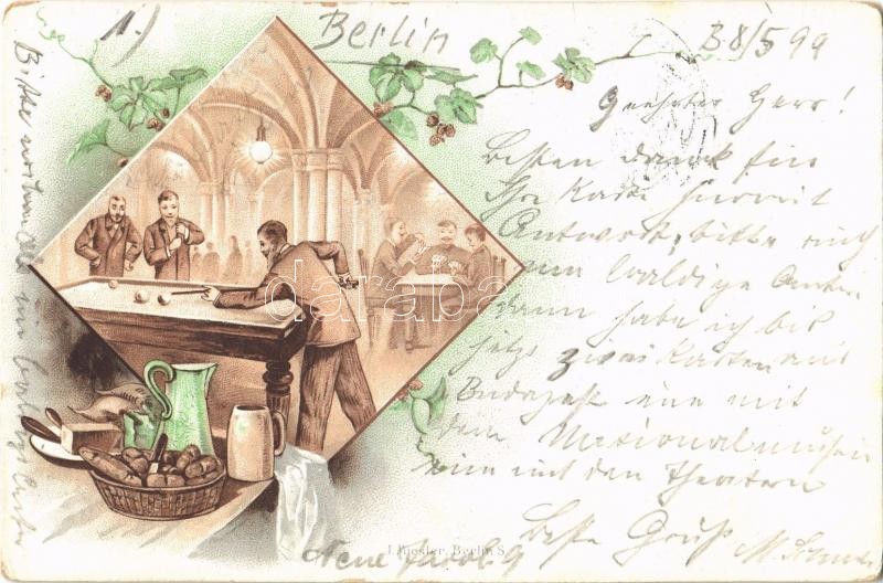 1899 Billiard game match. Art Nouveau, floral, litho (fa)