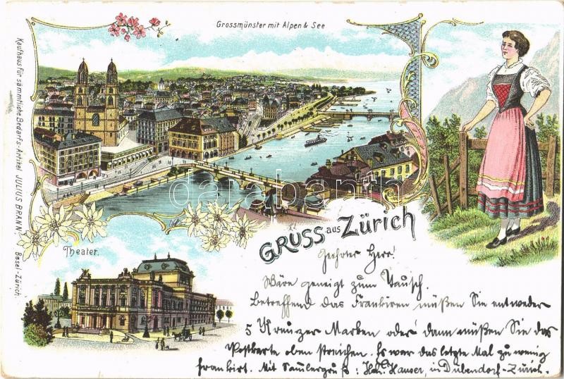 1898 Zürich, Grossmünster mit Alpen See, Theater / lake, bridges, thea... https://www.darabanth.com/hu/32-Nagyaukcio/32.1/Kepeslapok/Svajc~13777/1898-Zurich-Grossmunster-mit-Alpen-See-Theater-lake-bridges-theatre-folklore-Julius-Brann-~II2046742
