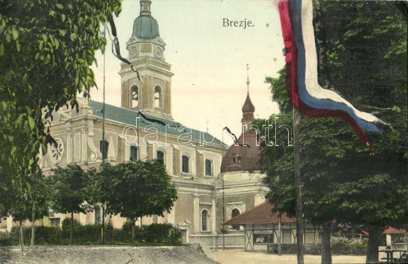 Brezje, Bresiach; Basilica. Slovenian flag (EK)