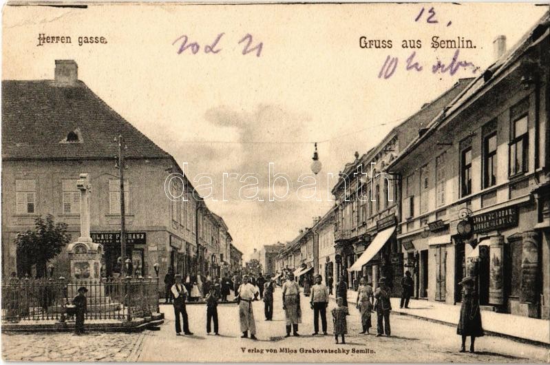 Leírás: 1904 Zimony, Semlin, Zemun; Úri utca, Nikolaus Pachany és Jelovac Testvérek üzlete / Herrengasse / street, shops (EK)