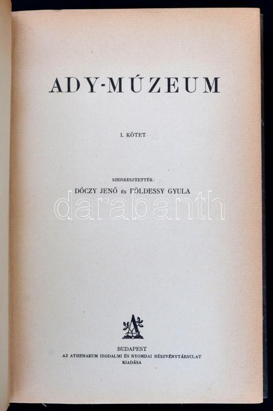 Ady-Múzeum I-II. kötet. Szerk.: Dóczy Jenő, Földessy Gyula.Bp., 1924, ... https://www.darabanth.com/hu/32-Nagyaukcio/32.1/Konyvek/Konyvek-Egyeb-ritkasagok~13390/Ady-Muzeum-I-II-kotet-Szerk-Doczy-Jeno-Foldessy-GyulaBp-1924-Athenaeum-183plus220-p-At~II2038041