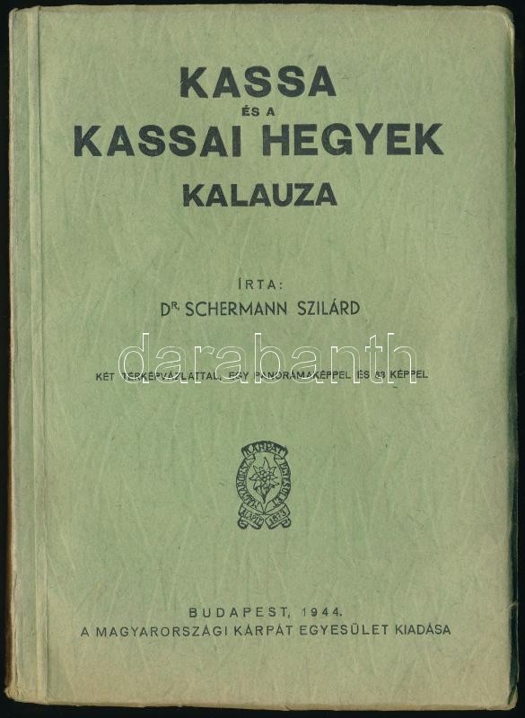 Leírás: Dr. Schermann Szilárd: Kassa és a Kassai hegyek kalauza. Bp., 1944, Magyarországi Kárpát Egyesület. Kiadói papírkötés, 350p. térkép mellklettel