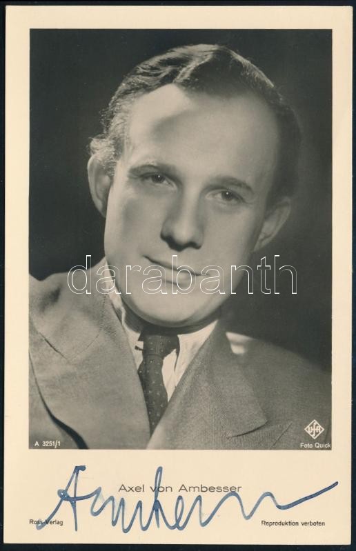 Axel von Ambesser német színész saját kézzel aláírt fotólap / German a... https://www.darabanth.com/hu/32-Nagyaukcio/32.1/Mutargy-papirregiseg-egyeb/Alairas~13367/Axel-von-Ambesser-nemet-szinesz-sajat-kezzel-alairt-fotolap-German-actor-autograph-signed-~II2045843