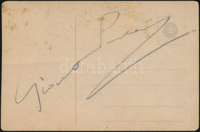 Giacomo Puccini zeneszerző aláírása őt ábrázoló levelezőlap hátulján https://www.darabanth.com/hu/32-Nagyaukcio/32.1/Mutargy-papirregiseg-egyeb/Alairas~13367/Giacomo-Puccini-zeneszerzo-alairasa-ot-abrazolo-levelezolap-hatuljan~II2029922