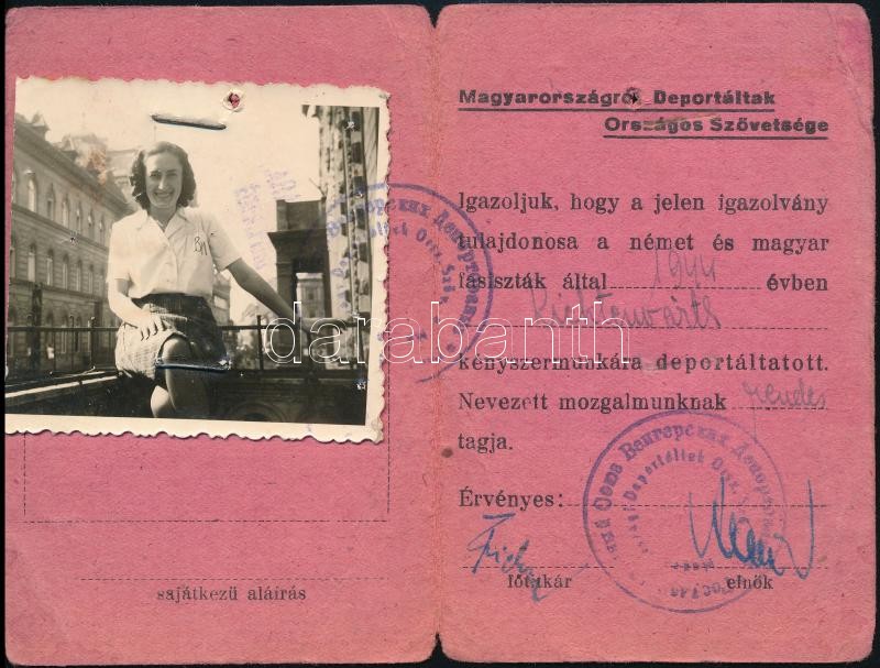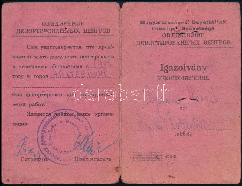 1944 a Magyarországról Deportáltak Országos Szövetséges fényképes igaz... https://www.darabanth.com/hu/32-Nagyaukcio/32.1/Mutargy-papirregiseg-egyeb/Judaika~13835/1944-a-Magyarorszagrol-Deportaltak-Orszagos-Szovetseges-fenykepes-igazolvanya~II2036033