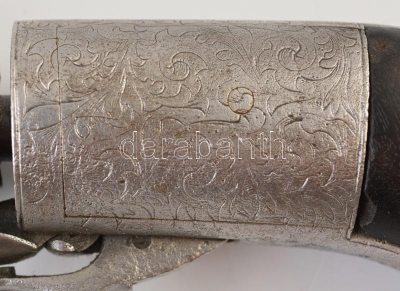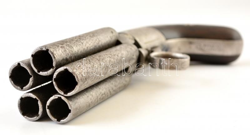 Mariette Breveté forgó többcsöves belga pisztoly, jelzett, kezelt fém ... https://www.darabanth.com/hu/32-Nagyaukcio/32.1/Mutargy-papirregiseg-egyeb/Militaria~13366/Mariette-Brevete-forgo-tobbcsoves-belga-pisztoly-jelzett-kezelt-fem-felulettel-h-18-5-cm-~II2044292