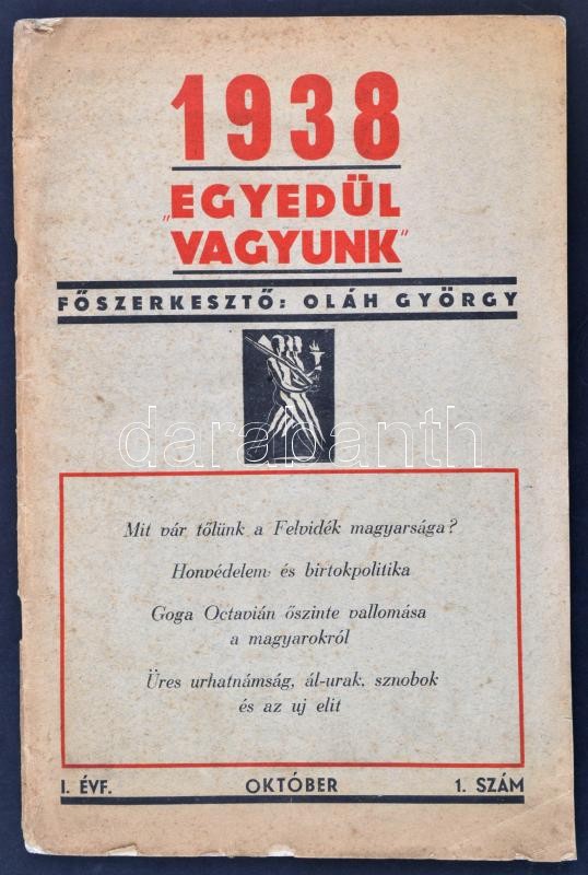 1938 az Egyedül vagyunk szélsőjobboldali folyóirat 1. évf. 1. lapszáma... https://www.darabanth.com/hu/32-Nagyaukcio/32.1/Mutargy-papirregiseg-egyeb/Nyomtatvanyok~13371/1938-az-Egyedul-vagyunk-szelsojobboldali-folyoirat-1-evf-1-lapszama-erdekes-irasokkal-~II2037800