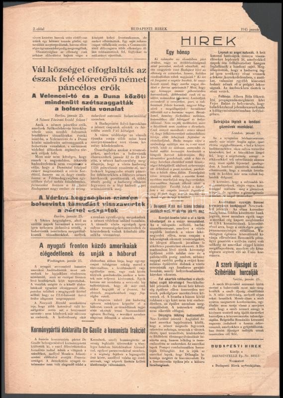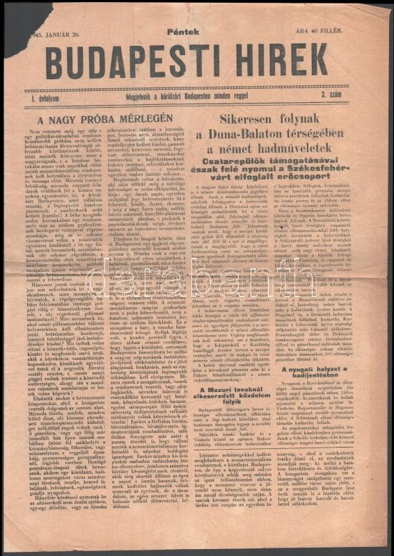1945 A Budapesti Hírek I. évfolyamának 3. száma, benne háborús hírekke... https://www.darabanth.com/hu/32-Nagyaukcio/32.1/Mutargy-papirregiseg-egyeb/Nyomtatvanyok~13371/1945-A-Budapesti-Hirek-I-evfolyamanak-3-szama-benne-haborus-hirekkel~II2019584