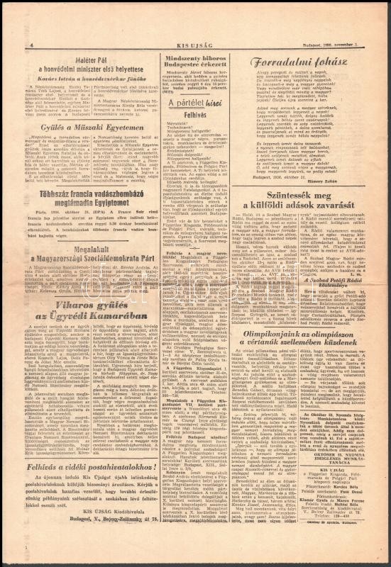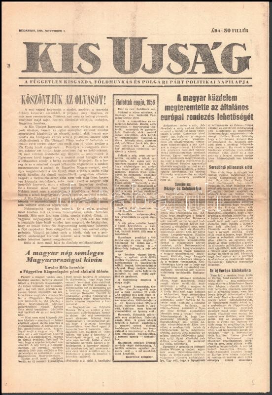 Leírás: 1956 a Kis újság kisgazda napilap november 1-jei lapszáma, érdekes írásokkal