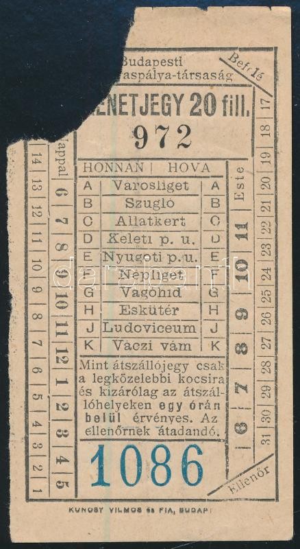 Budapesti Közúti Vaspálya Társaság menetjegy