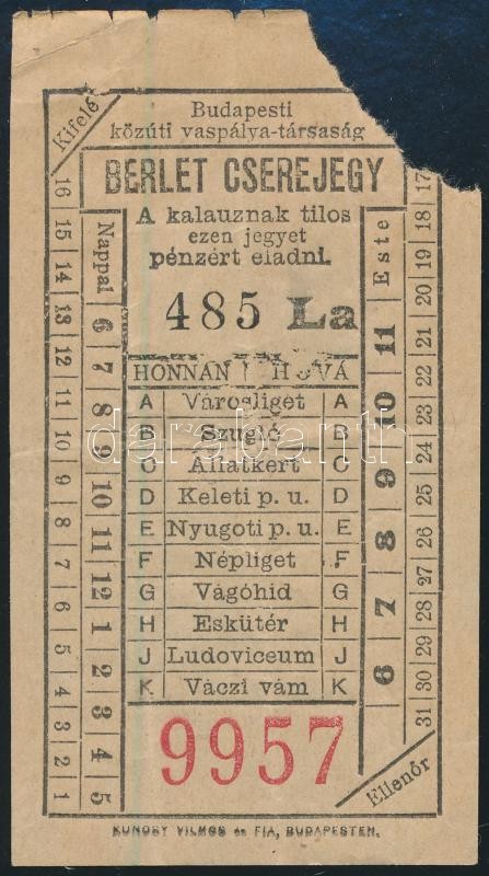 Budapesti Közúti Vaspálya Társaság menetjegy