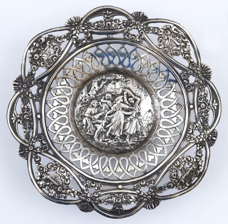 Antik ezüst (Ag.) áttört bieder kis tálka, jelzett, poncolt, nettó: 67... https://www.darabanth.com/hu/32-Nagyaukcio/32.1/Nemesfem-Disztargyak-Orak-es-Ekszerek/Nemesfem-Disztargyak-Orak-es-Ekszerek~13718/Antik-ezust-Ag-attort-bieder-kis-talka-jelzett-poncolt-netto-67-g-d-12-5-cm~II2019853