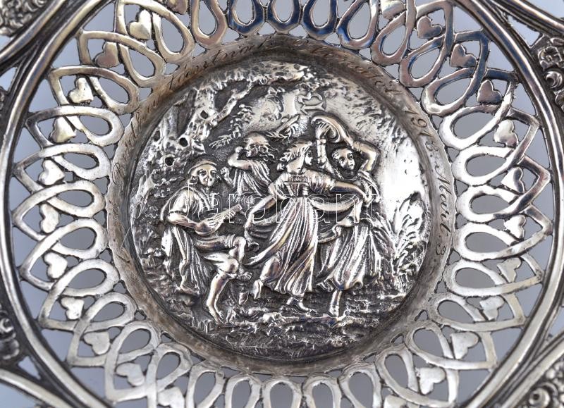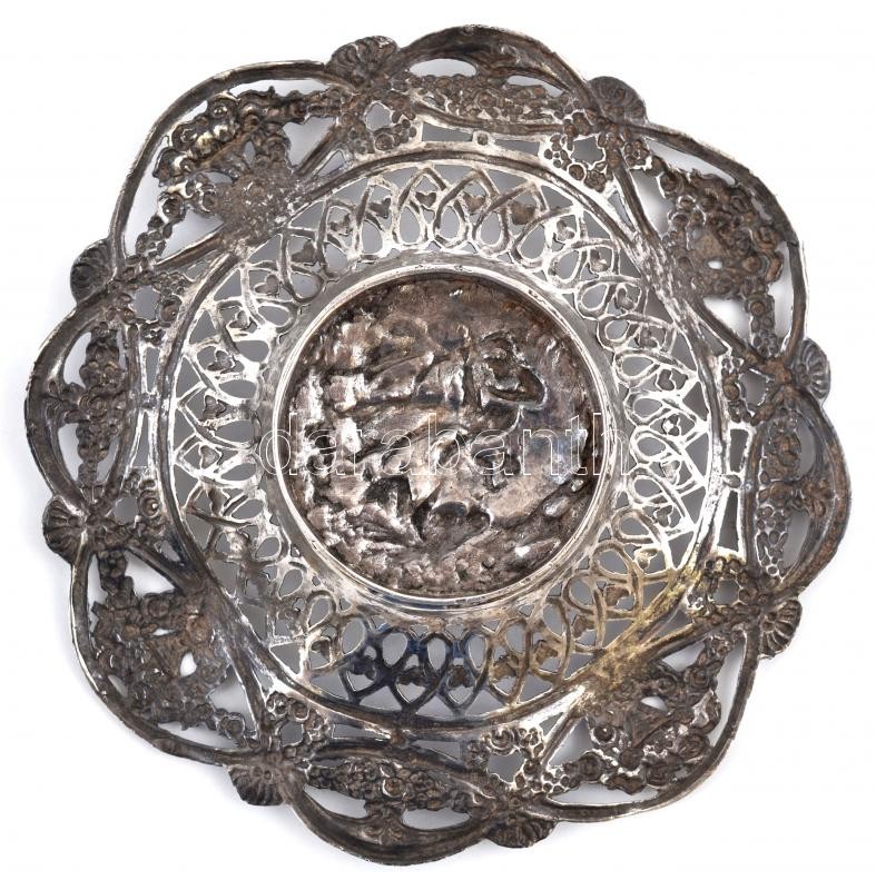 Leírás: Antik ezüst (Ag.) áttört bieder kis tálka, jelzett, poncolt, nettó: 67 g, d: 12,5 cm