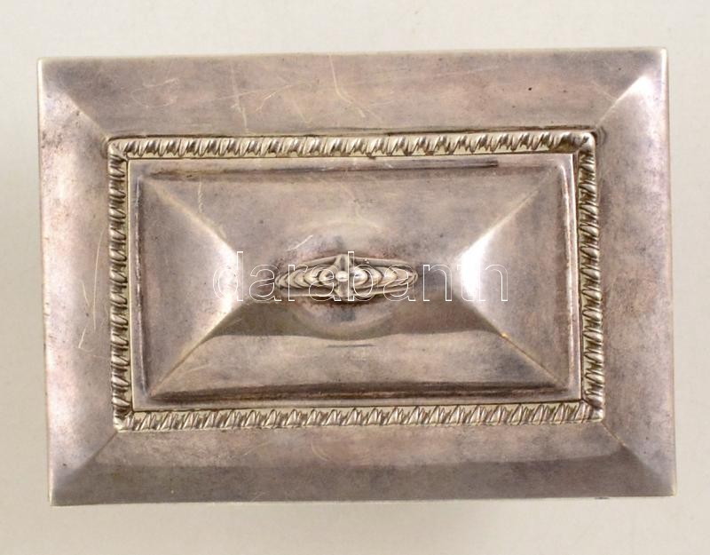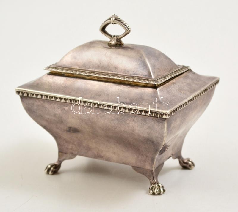 Leírás: cca 1910 Angol ezüst (Ag) lábas dobozka, jelzett, 10×7×9,5 cm, nettó: 182,3 g / England, hallmarked sugar box, signed nett 182,3 g
