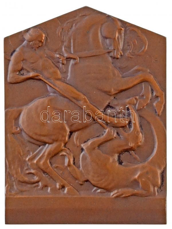 Moiret Ödön (1883-1966) 1912. "Szent György" Br plakett, Éremkedvelők Egyesületének tagsági érméje, peremén "ÉKE 1912", sorszámozott, 75-os sorszámmal (156,85g/59x79mm) T:1- / Hungary 1912. "Szent György" Br plaque, membership medal of the Association of Medal Enthusiasts, with "ÉKE 1912" and serial number "75" on edge Sign: Ödön Moiret (156,85g/59x79mm) C:AU