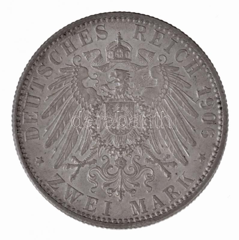 Német Államok / Baden 1906. 2M Ag "I. Frigyes mint nagyherceg" (11,14g) T:1- / German States / Baden 1906. 2 Mark Ag "Friedrich I as Grand Duke" (11,14g) C:AU
