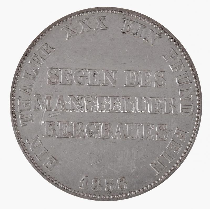 Német Államok / Poroszország 1858A Tallér Ag "IV. Frigyes Vilmos / Mansfeld-i bánya" (18,49g) T:2 patina / German States / Prussia 1858A Thaler Ag "Friedrich Wilhelm IV / Mansfelder Bergbau" (18,49g) C:XF patina