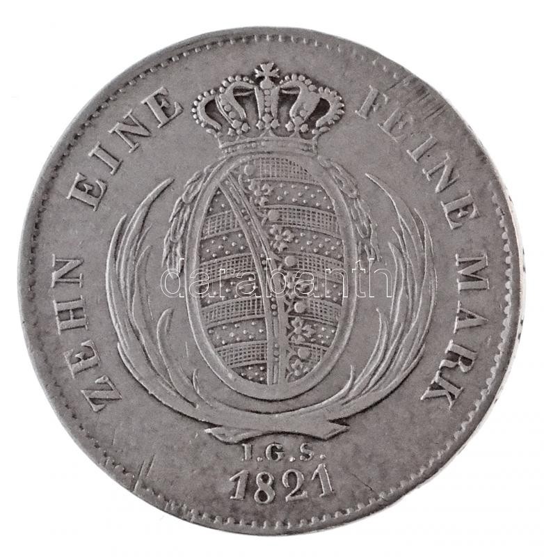 Német Államok / Szászország 1821IGS Tallér Ag "I. Frigyes Ágost" (27,89g) T:2,2- ph. / German States / Saxony-Albertine 1821IGS Thaler Ag "Friedrich August I" (27,89g) C:XF,VF edge error