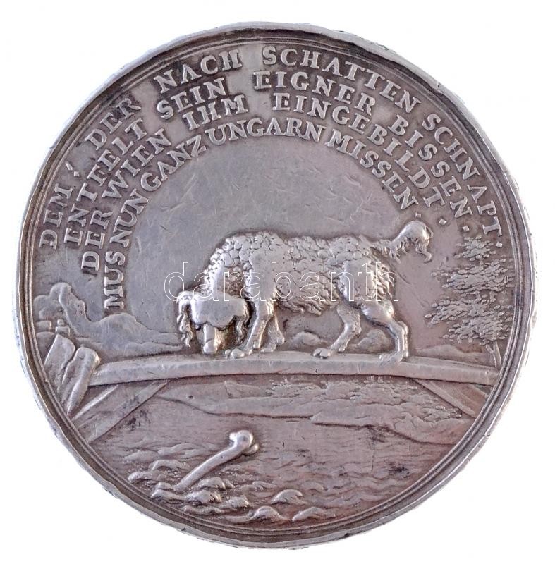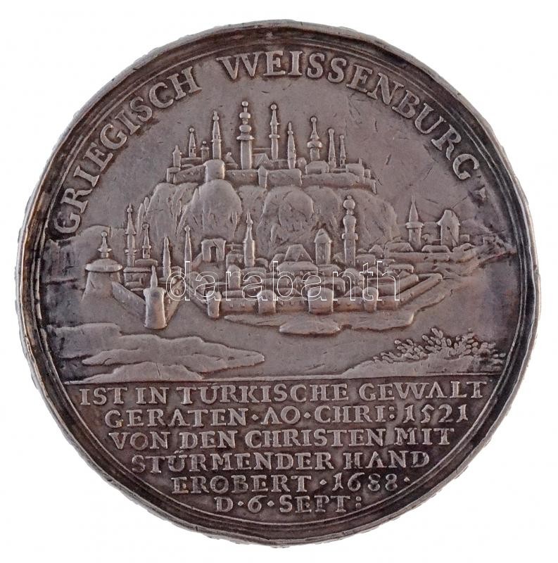 1688. Német nyelvű Ag emlékérem Nándorfehérvár visszafoglalásának alkalmából "DEM DER NACH SCHATTEN SCHNAPT ENTFELT SEIN EIGNER BISSEN DER WIEN IHM EINGEBILDT MUN NUN GANZ UNGARN MISSEN / GRIEGISCH WEISSENBURG - IST NUN TÜRKISCHEN GEWALT GERATEN AO CHRIS: 1521 VON DEN CHRISTEN MIT STÜRMENDER HAND EROBERT 1688 D. 6. SEPT." (44,41g/49mm) T:2- ph. / Hungary 1688. German language Ag commemorative medallion issued for the recapturing of Nándorfehérvár "DEM DER NACH SCHATTEN SCHNAPT ENTFELT SEIN EIGNER BISSEN DER WIEN IHM EINGEBILDT MUN NUN GANZ UNGARN MISSEN / GRIEGISCH WEISSENBURG - IST NUN TÜRKISCHEN GEWALT GERATEN AO CHRIS: 1521 VON DEN CHRISTEN MIT STÜRMENDER HAND EROBERT 1688 D. 6. SEPT." (44,41g/49mm) C:VF edge error