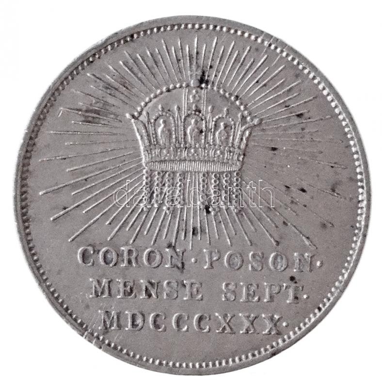 Habsburg Birodalom 1830. "V. Ferdinánd pozsonyi koronázása" Ag zseton. "FRANC I ET PER EVM FERD V / CORON POSON DIE XXVIII SEPT MDCCCXXX" (5,45g/23mm) T:1- /