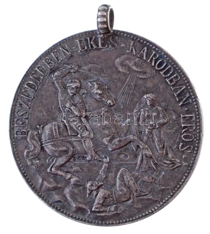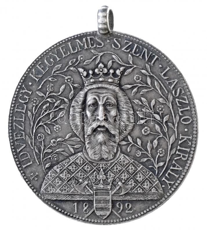 Szárnovszky Ferenc (1863-1903) 1892. "Szent László érem" fémjelzett Ag emlékérem füllel. "IDVEZLEGY KEGYELMES SZENT LÁSZLÓ KIRÁLY / BESZÉDEDBEN ÉKES KARODBA ERŐS" "S.G.A. (Scheid ezüstáru és éremgyár)" gyártói jelzéssel (21,77g/0.800/41mm) T:2 /