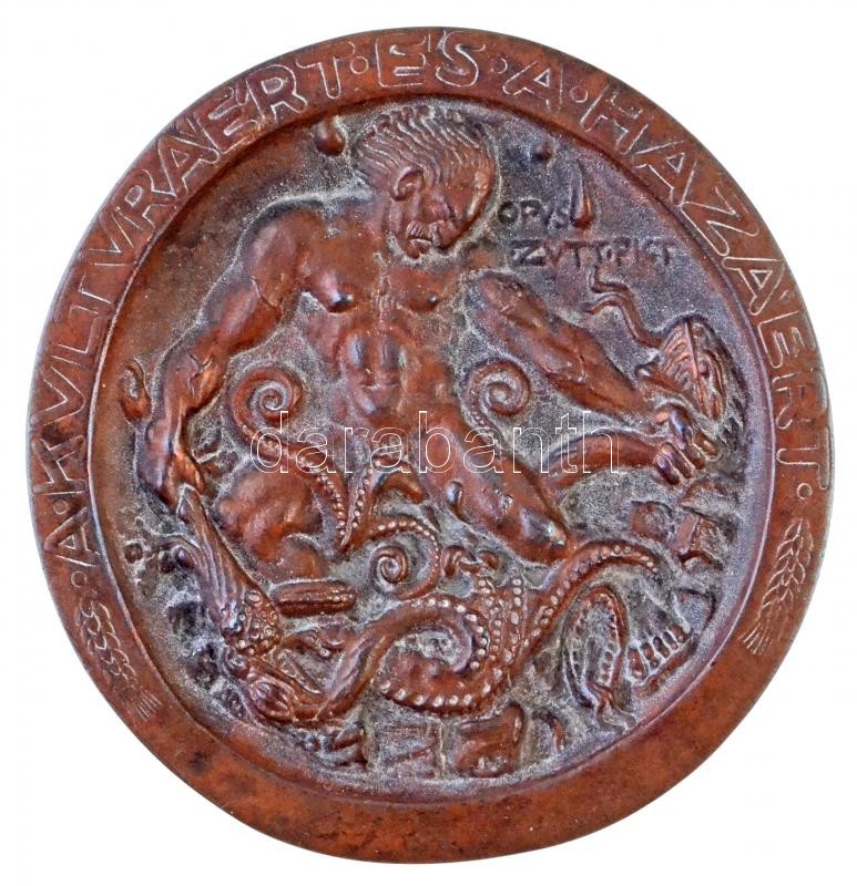 Zutt Richard (1887-1938) 1914. "KÉVE Művészegyesület" jelzetlen Br emlékérem. "A KULTURÁÉRT ÉS A HAZÁÉRT / A KÉVE 1914" (299,33g/85mm) T:1-,2 / Hungary 1914. "KÉVE Art Association" Br commemorative medallion. Sign: Richard Zutt (299,33g/85mm) C:AU,XF