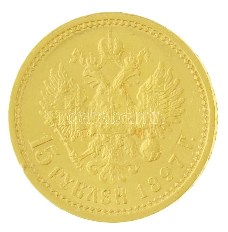 Orosz Birodalom 1897. 15R Au "II. Miklós" (12,92g/0.900) T:2... https://www.darabanth.com/hu/32-Nagyaukcio/32.1/Numizmatika/Magyar-es-kulfoldi-aranypenzek-es-emlekveretek~13433/Orosz-Birodalom-1897-15R-Au-II-Miklos-12-92g0900-T2-ph-Russian-Empire-1897-15-Rubles-A~II2038135