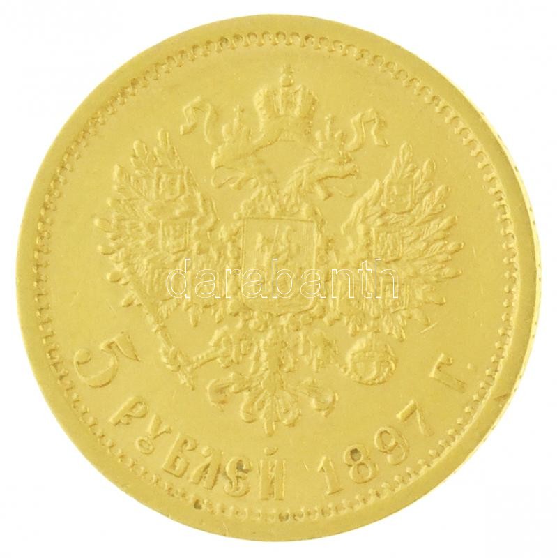 Orosz Birodalom 1897. 5R Au "II. Miklós" (4,31g/0.900) T:XF ... https://www.darabanth.com/hu/32-Nagyaukcio/32.1/Numizmatika/Magyar-es-kulfoldi-aranypenzek-es-emlekveretek~13433/Orosz-Birodalom-1897-5R-Au-II-Miklos-4-31g0900-TXF--Russian-Empire-1897-5-Roubles-Au-~II2038136