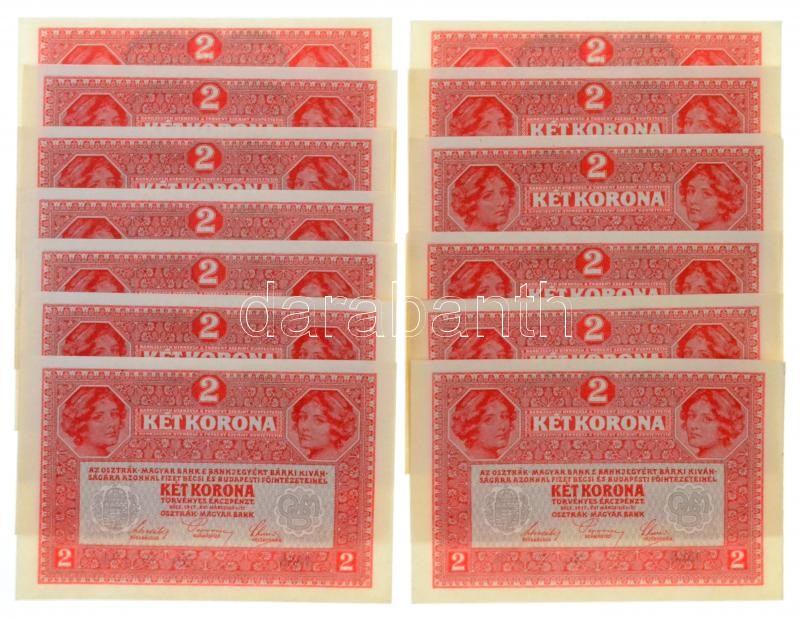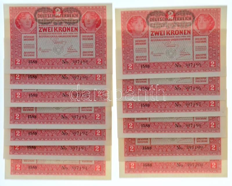 Leírás: 1917. 2K (13x) mind "DEUTSCHÖSTERREICH" felülbélyegzéssel, sorszámkövetők T:I,I- /