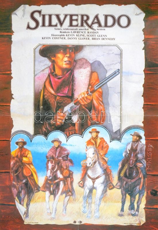 1987 Miklós Károly (?-): Silverado, filmplakát, MOKÉP, hajtott, 80×60 ... https://www.darabanth.com/hu/32-Nagyaukcio/32.1/Plakat/Plakat~13372/1987-Miklos-Karoly-Silverado-filmplakat-MOKEP-hajtott-80C39760-cm~II2034936