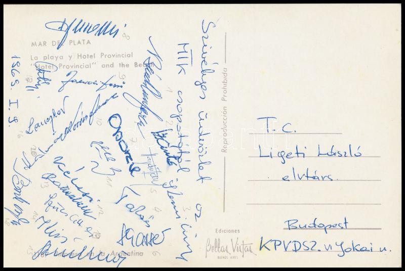 Leírás: 1969 az MTK labdarúgóinak (Szántó, Keszei, Takács, stb.) aláírásai levelezőlapon