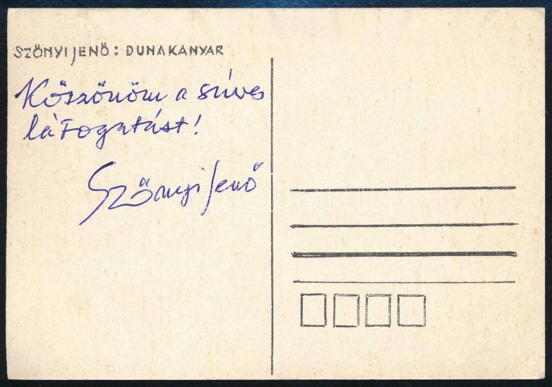 Szőnyi Jenő festőművész által aláírt levelezőlap https://www.darabanth.com/hu/320-Gyorsarveres/320.0/Festmeny-mutargy-papirregiseg-egyeb/Alairas~500019/Szonyi-Jeno-festomuvesz-altal-alairt-levelezolap~II1766796