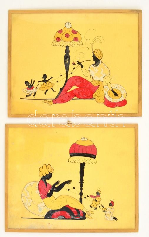 2 db orientalizáló motívumos festett üvegkép, kopásokkal, 21×27 cm https://www.darabanth.com/hu/320-Gyorsarveres/320.0/Festmeny-mutargy-papirregiseg-egyeb/Bolhapiac~500011/2-db-orientalizalo-motivumos-festett-uvegkep-kopasokkal-21C39727-cm~II1770450