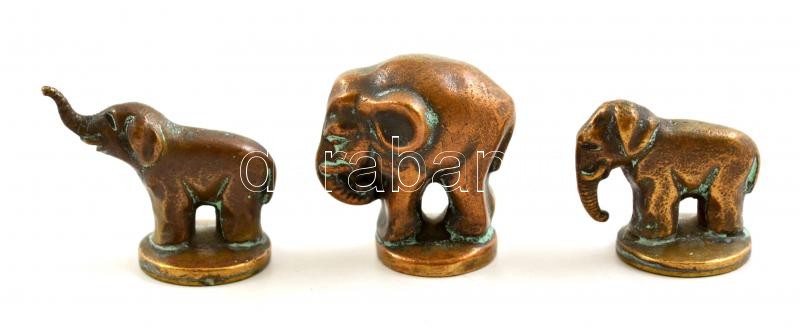 Leírás: 3 db réz elefánt, m: 3 és 3,5 cm
