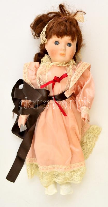 Leírás: Játékbaba porcelán fejjel és kézzel-lábbal, jelzett, m: 40 cm