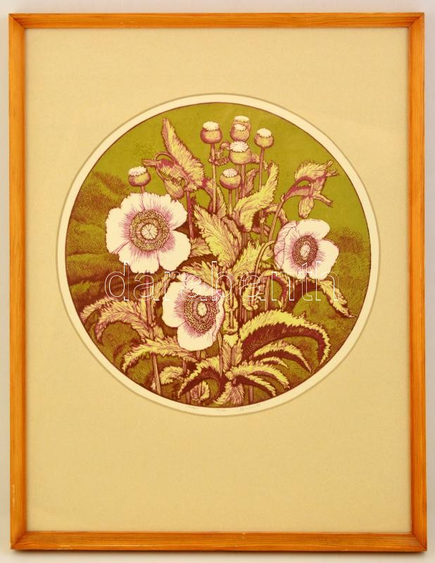 Németh András (1941-): Mák. Színes linó, papír, jelzett, üvegezett ker... https://www.darabanth.com/hu/320-Gyorsarveres/320.0/Festmeny-mutargy-papirregiseg-egyeb/Festmenyek-es-grafikak~500001/Nemeth-Andras-1941-Mak-Szines-lino-papir-jelzett-uvegezett-keretben-d36-cm~II1765667