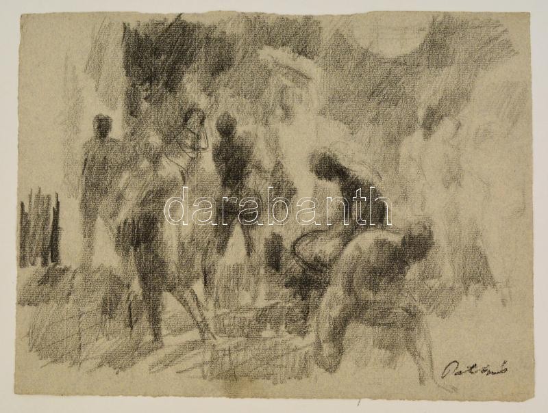 Patkó jelzéssel: Fürdőző. Alakok. Szén, papír, 24×31 cm https://www.darabanth.com/hu/320-Gyorsarveres/320.0/Festmeny-mutargy-papirregiseg-egyeb/Festmenyek-es-grafikak~500001/Patko-jelzessel-Furdozo-Alakok-Szen-papir-24C39731-cm~II1767633