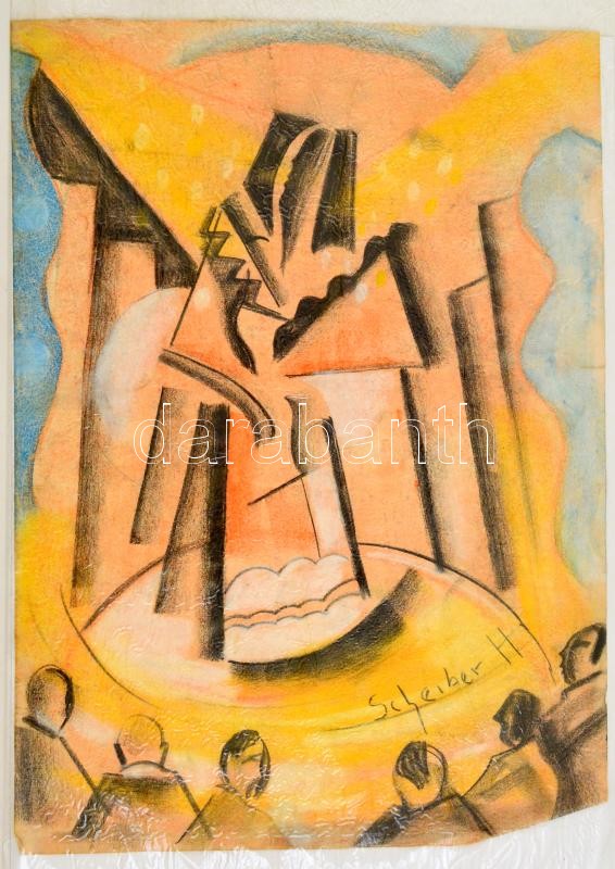 Leírás: Scheiber jelzéssel: Előadás. Pasztell, papír, 43×30 cm