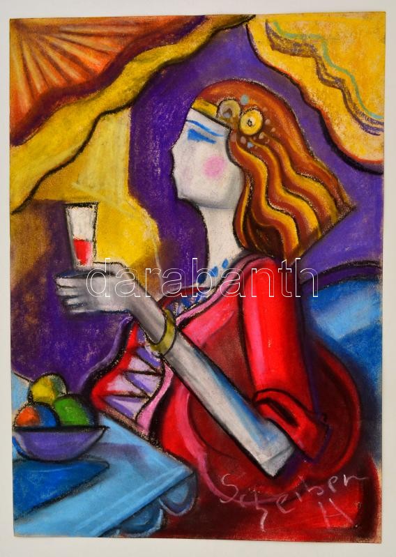 Scheiber jelzéssel: Nő pohárral. Pasztell, papír, 43×30 cm https://www.darabanth.com/hu/320-Gyorsarveres/320.0/Festmeny-mutargy-papirregiseg-egyeb/Festmenyek-es-grafikak~500001/Scheiber-jelzessel-No-poharral-Pasztell-papir-43C39730-cm~II1765870