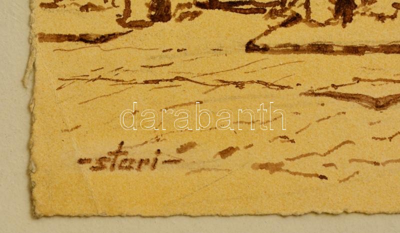 Leírás: Sostarics Lajos (1896-1968): Óbuda, Solymári utca, tus, papír, jelzett, kartonra ragasztva, 21,5×30,5 cm