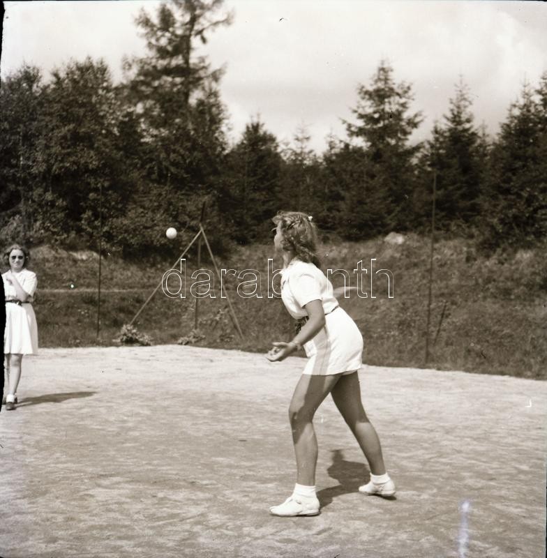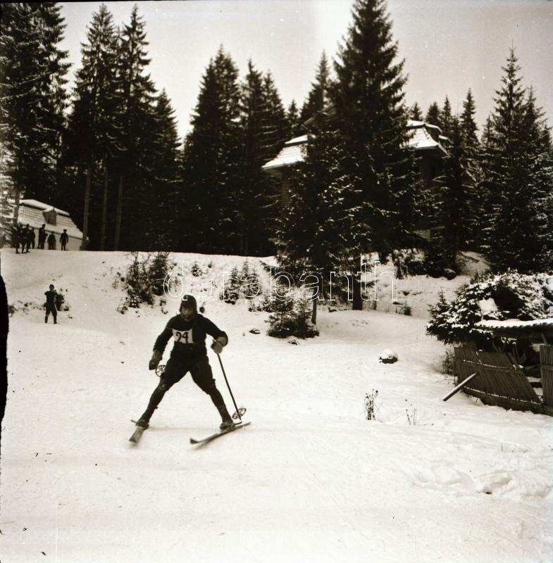 Leírás: Vegyes fotónegatív tétel (síelők a Tátrában, teniszezők, katonák, stb.), 22 db, 6x6 cm