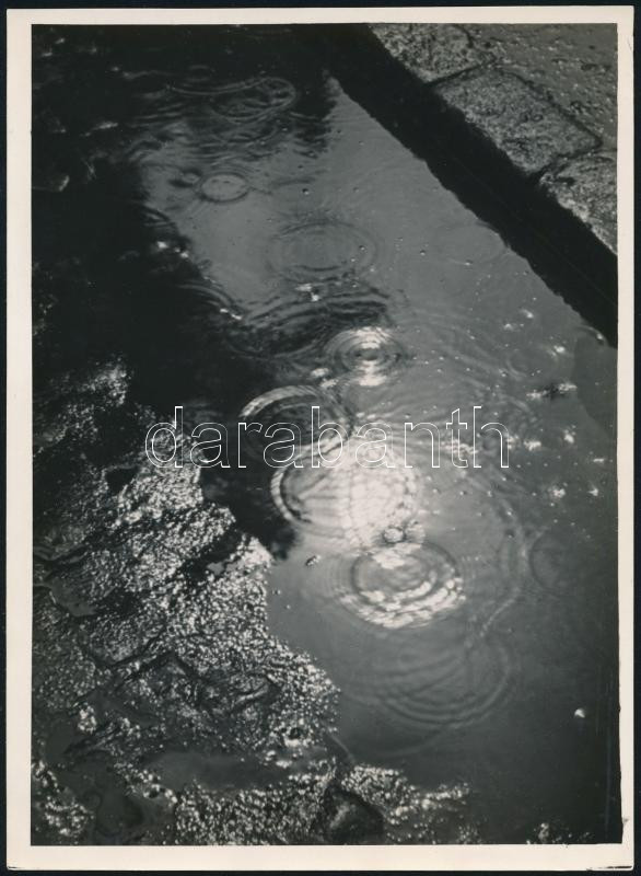 cca 1934 Kinszki Imre (1901-1945): Séta az esőben, pecséttel jelzett vintage fotóművészeti alkotás, 18x13 cm / Imre Kinszki(1901-1945): Raindrops, vintage photo with artist's stamp on the verso, 18x13 cm