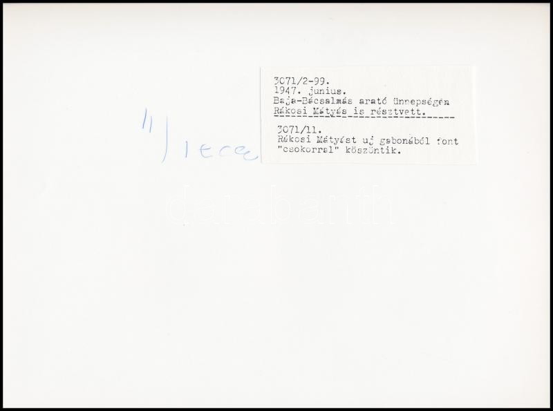 cca 1947 Rákosi Mátyásról készült 3 db riportfotó, későbbi nagyítások,... https://www.darabanth.com/hu/320-Gyorsarveres/320.0/Festmeny-mutargy-papirregiseg-egyeb/Foto~500020/cca-1947-Rakosi-Matyasrol-keszult-3-db-riportfoto-kesobbi-nagyitasok-feliratozva-18x24~II1764973