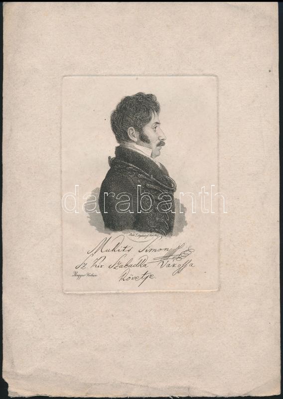Leírás: cca 1840 Mukits Simon, Sz. Kir. Szabadka Várossa követje. Rézmetszet. 11x16 cm