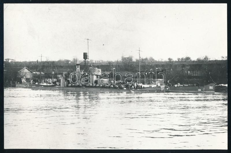 A Leitha monitor 1916-ban zsákmányolt aknákkal, a Dunai Flottila hajója, az 1980-as években eredeti negatívról előhívott másolat, hátoldalon feliratozva, 12x18 cm