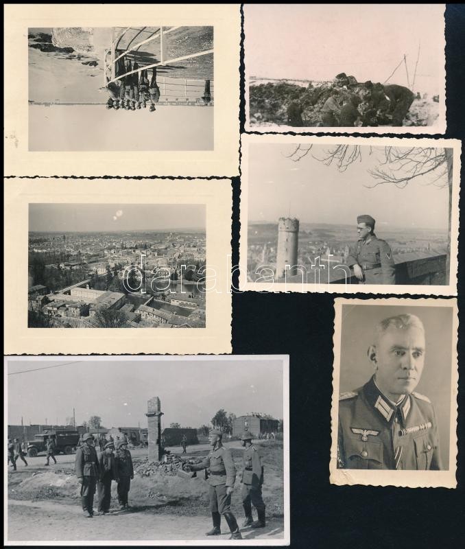 Leírás: cca 1940-1945 17 db német katonafotó, részben a keleti frontról is, egy részük hátulján feliratozva, különböző méretben