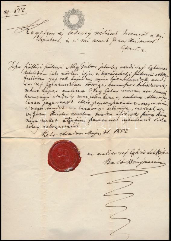 1852 Szignettás okmány 15kr https://www.darabanth.com/hu/320-Gyorsarveres/320.0/Festmeny-mutargy-papirregiseg-egyeb/Okmanyok~500017/1852-Szignettas-okmany-15kr~II1766865