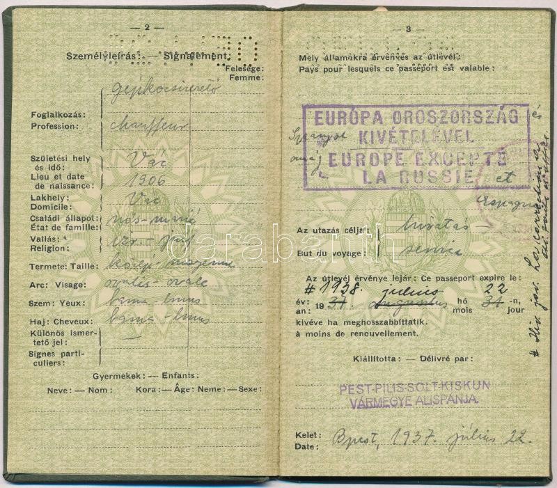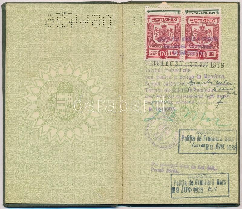 1938 Keményfedeles útlevél / Hungarian passport https://www.darabanth.com/hu/320-Gyorsarveres/320.0/Festmeny-mutargy-papirregiseg-egyeb/Okmanyok~500017/1938-Kemenyfedeles-utlevel-Hungarian-passport~II1768283