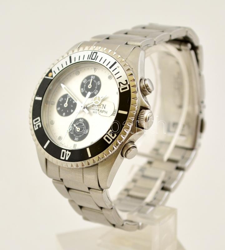 Leírás: Citizen Cronograph karóra fém szíjjal, elemcserére szorul