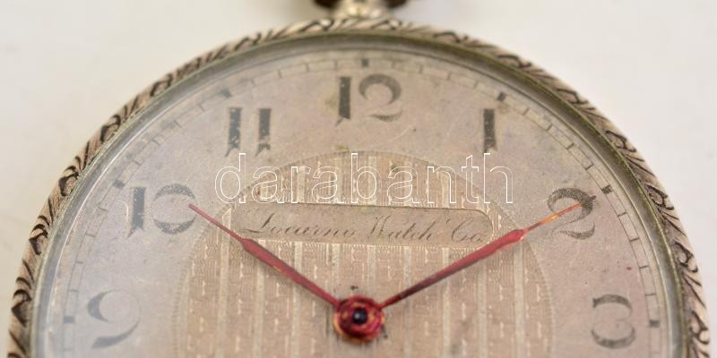 Leírás: Locarno Watch ezüst zsebóra, működő szerkezettel,"Levente Intézmény Vezetősége 1927" gravírozással, jelzett, bruttó: 47 g d: 4,5 cm